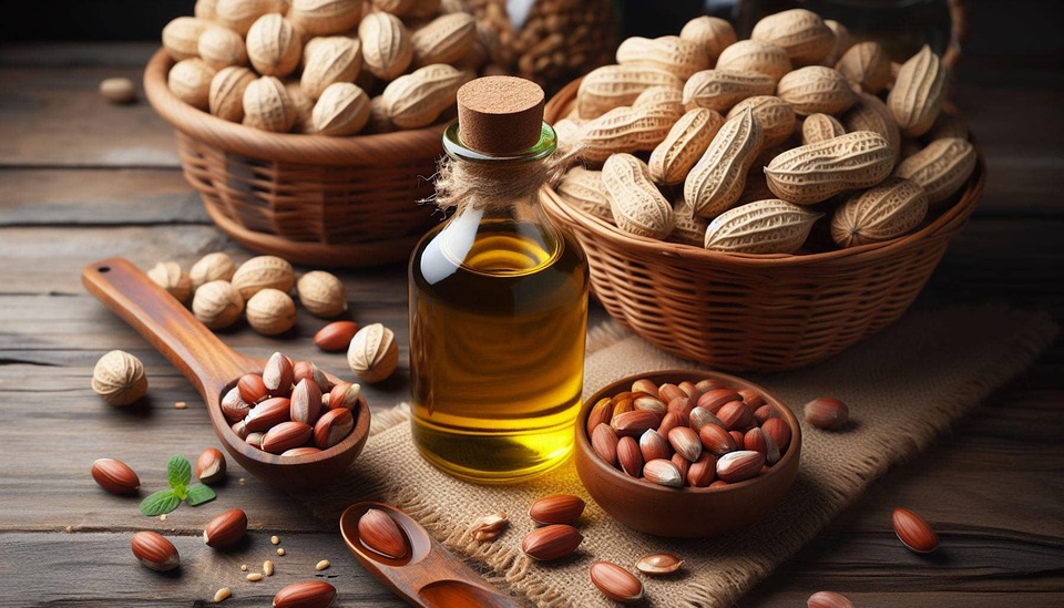 Groundnut oil contains monounsaturated fats that help maintain healthy cholesterol levels. Its high smoke point makes it suitable for deep frying and regular cooking without nutrient loss. Naturally rich in vitamin E, it supports heart health and antioxidant protection. The mild nutty taste enhances dishes without overpowering flavors. Traditional extraction preserves its nutritional value and quality.